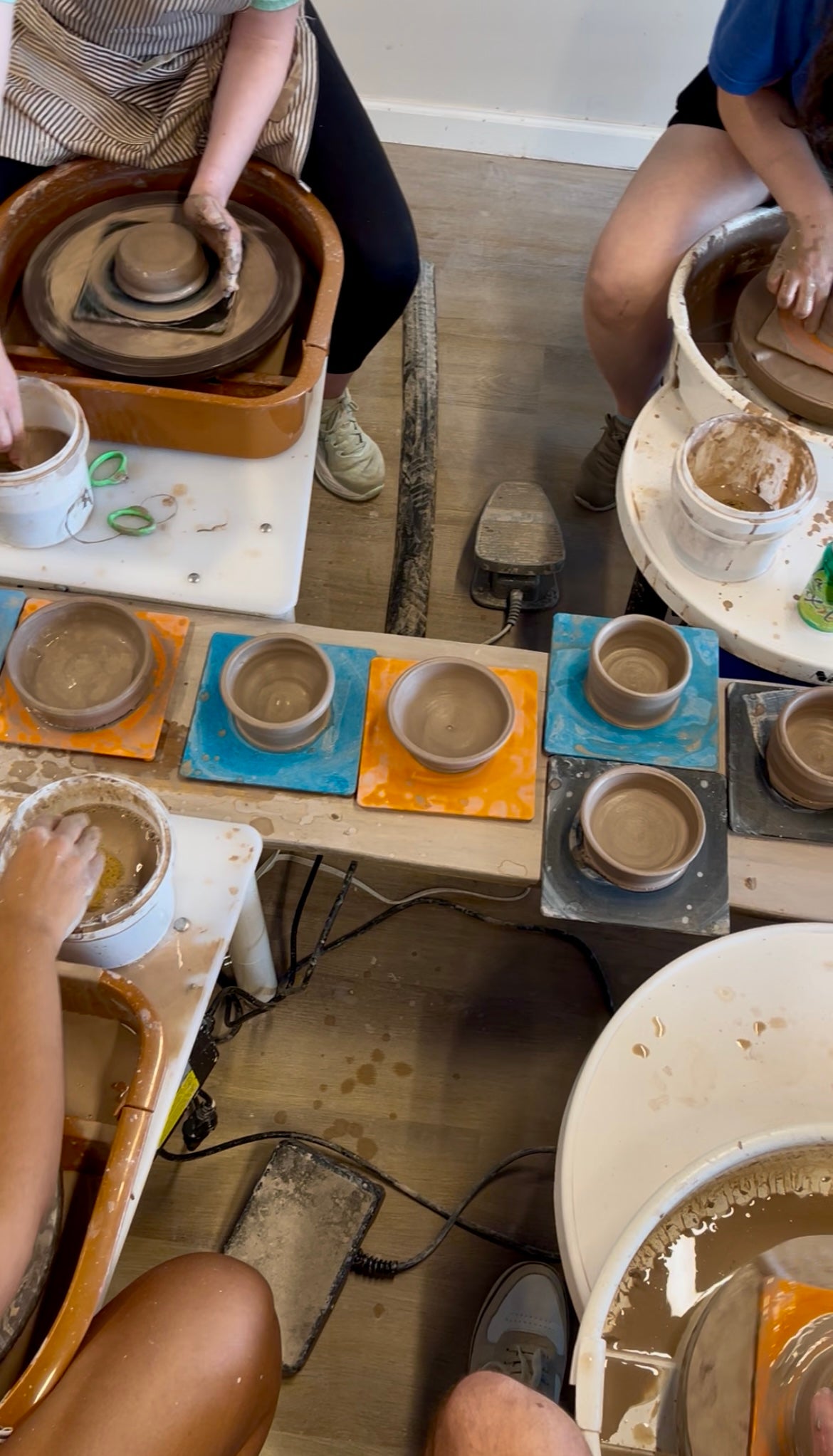 this course includes instruction on the entire pottery process from start to finish. in this course, you will learn the basics of wheel throwing, trimming, hand building, and glazing your pieces! This course is capped at 8 people, meaning you get lots of individual instruction.